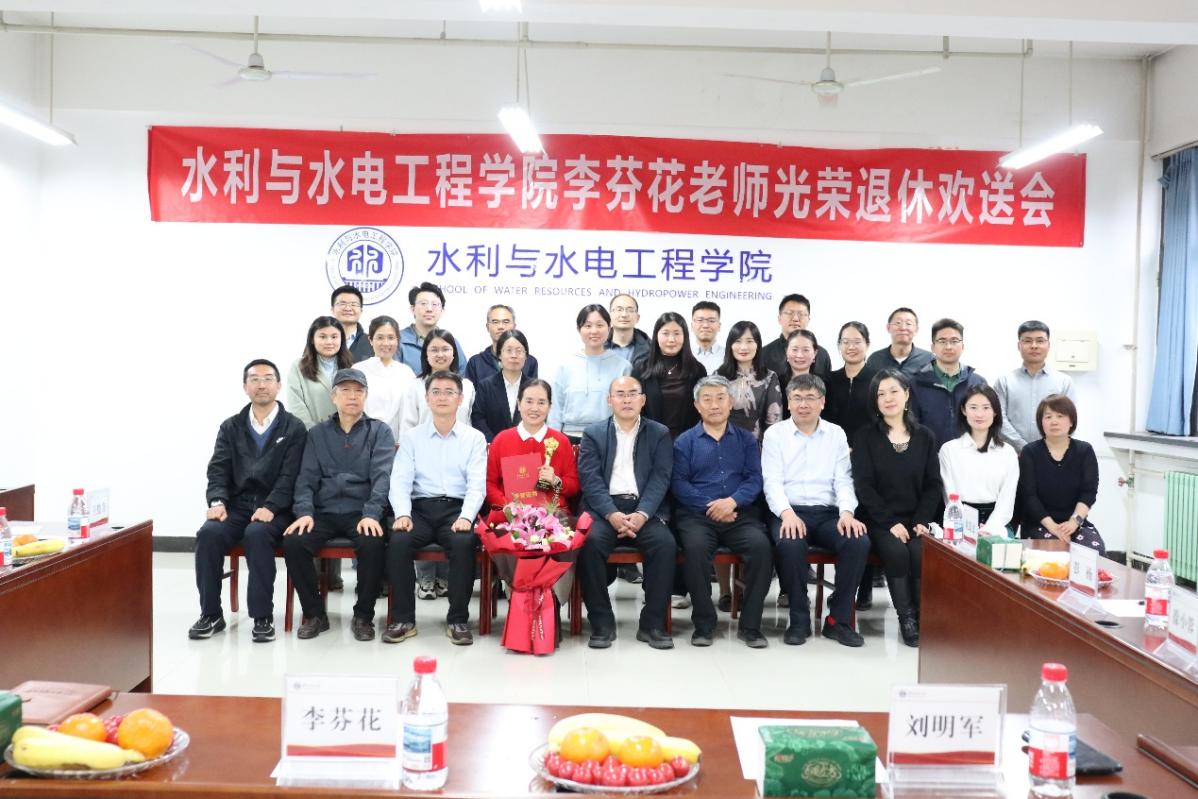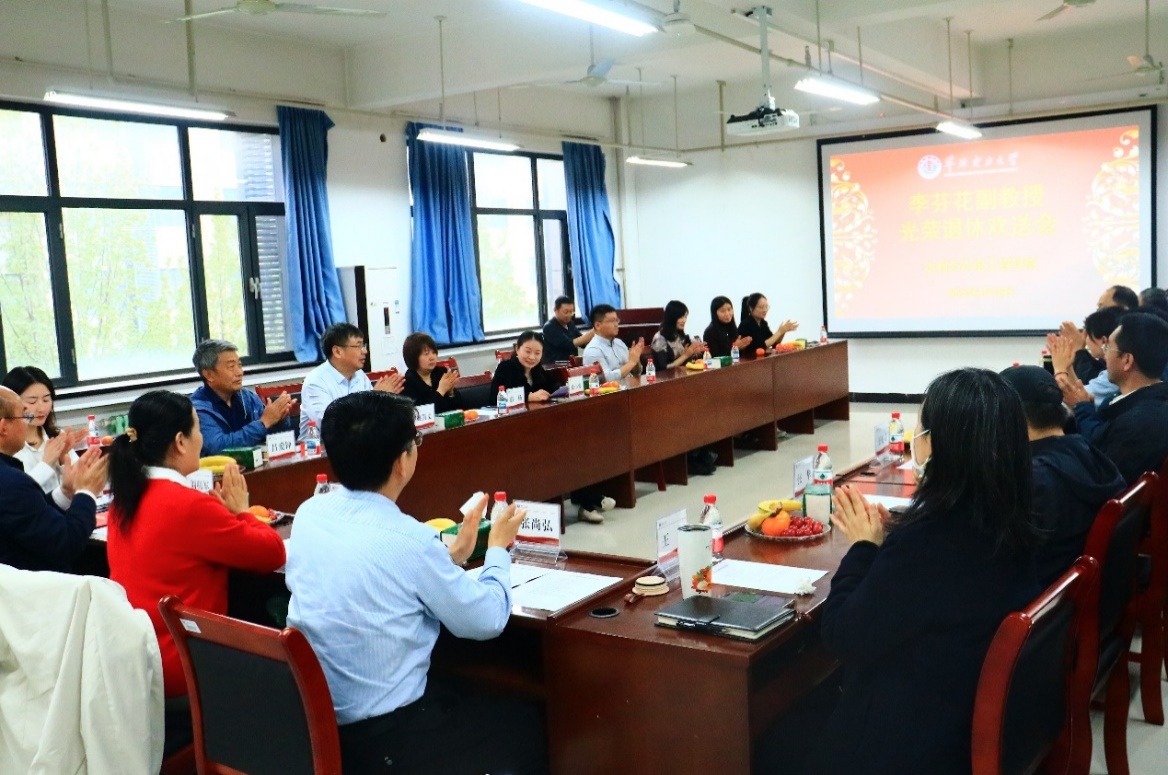 最后,学院党委书记刘明军向李芬花老师宣读并颁发荣退证书,全体参会人员共同合影留念,记录下这难忘的一刻。