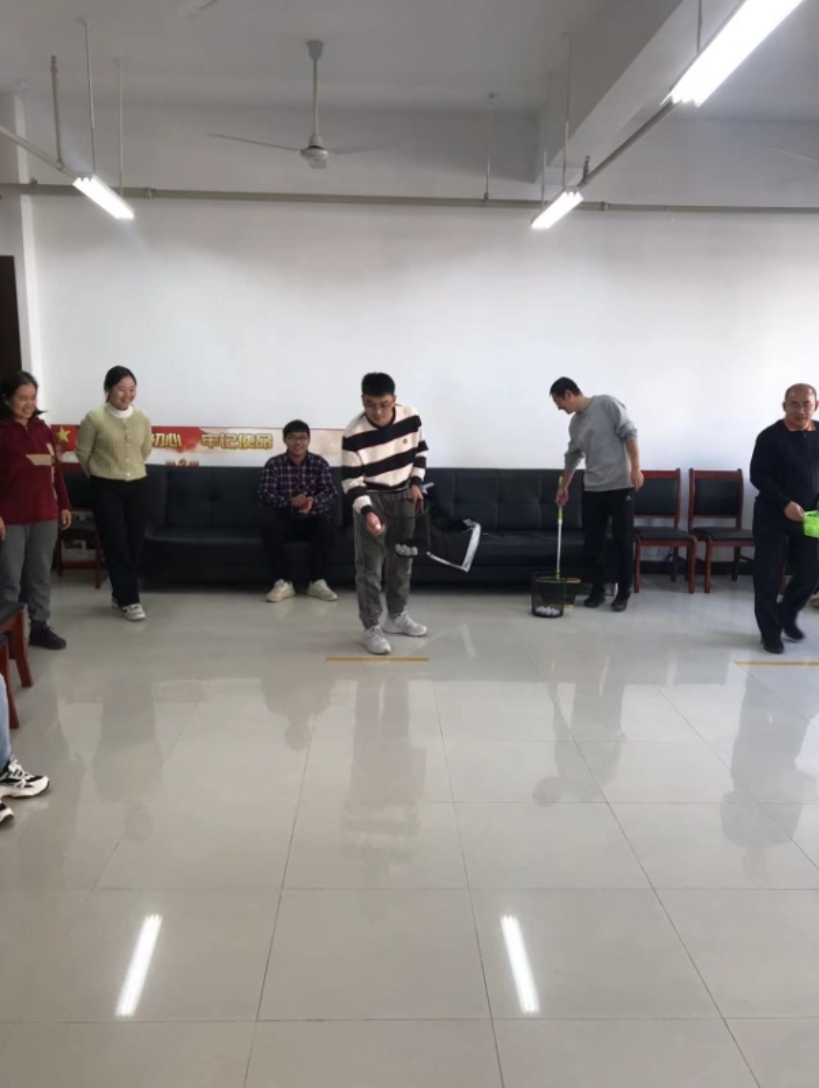 学院很多老师就提前到场,开始了掷球练习,老师们相互交流一些技巧,使用多种姿势和角度掷球,踊跃尝试,现场气氛非常活跃,命中率逐步提高。老师们练习了半个小时左右,比赛正式开始。