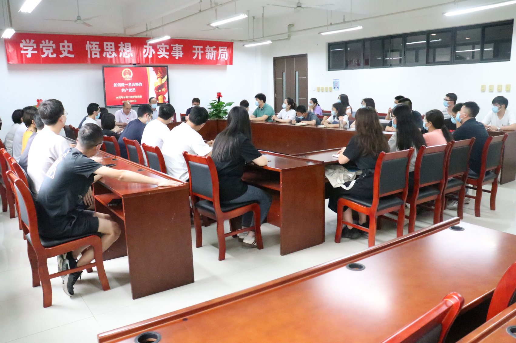 水电教工党支部书记张宁认为,要成为一名合格的党员,必须要坚定理想信念,在自身的工作岗位上履行基本的工作职责。水文与水资源教研室王乐老师认为教师的基本职责是教书育人,结合自身职业,成为一名合格党员,要坚持立德树人根本任务,了解学生的思想动态,加强自身理论学习。青年教师代表唐彩红认为优秀是一种习惯,作为青年教师党员,要坚定理想信念,关心关爱学生,加强科研创新,培养学生创新能力,达到教学相长的效果,在工作中积极上进,脚踏实地。
