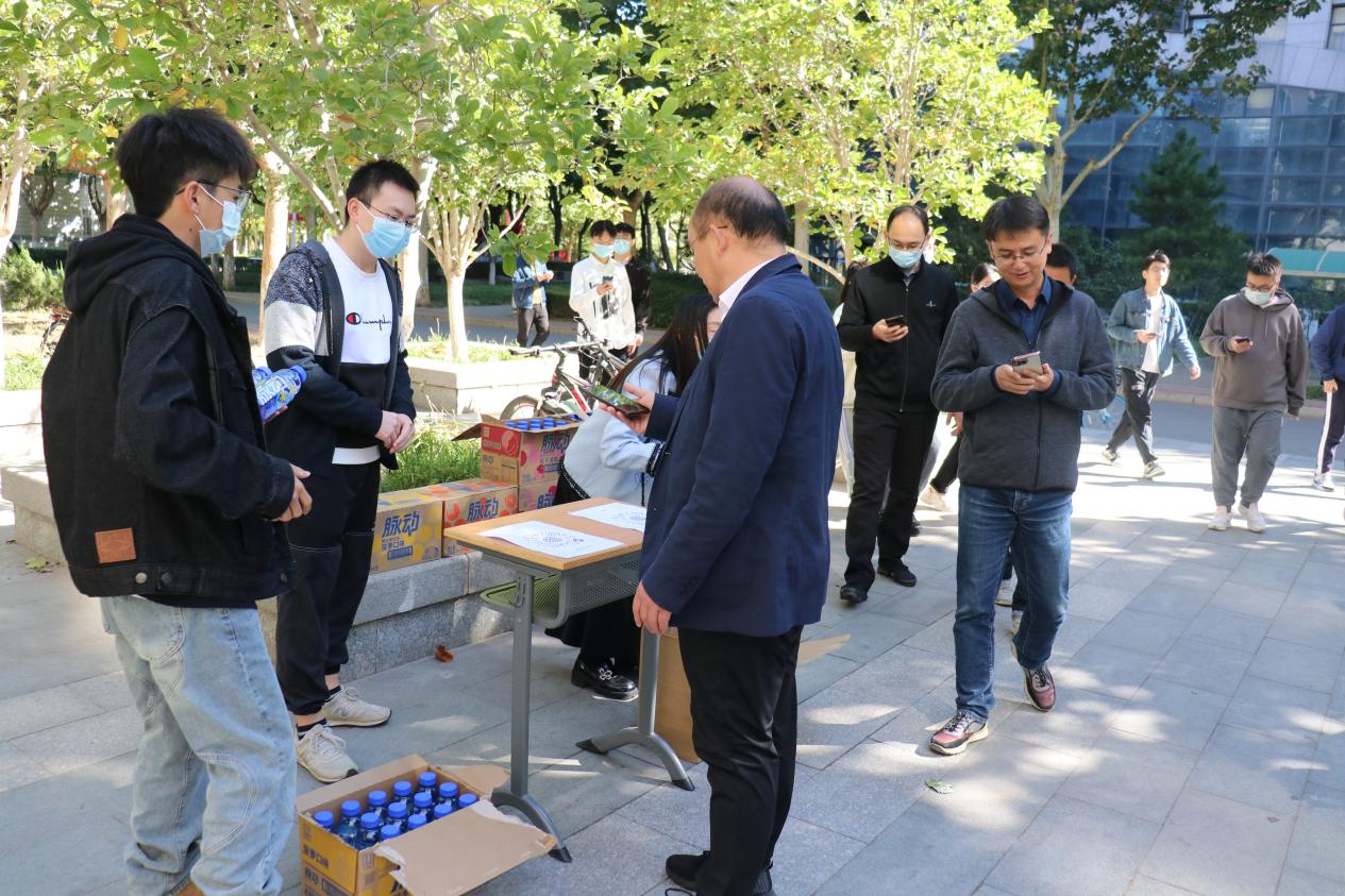 师生们带着欢声笑语结伴而行,主楼、南街,华电的各个角落遍布着健走者们的身影。经过两处打卡点,来到终点处时已经口干舌燥,学院还贴心的为老师同学们准备了饮品,以保证大家健步走后的状态。