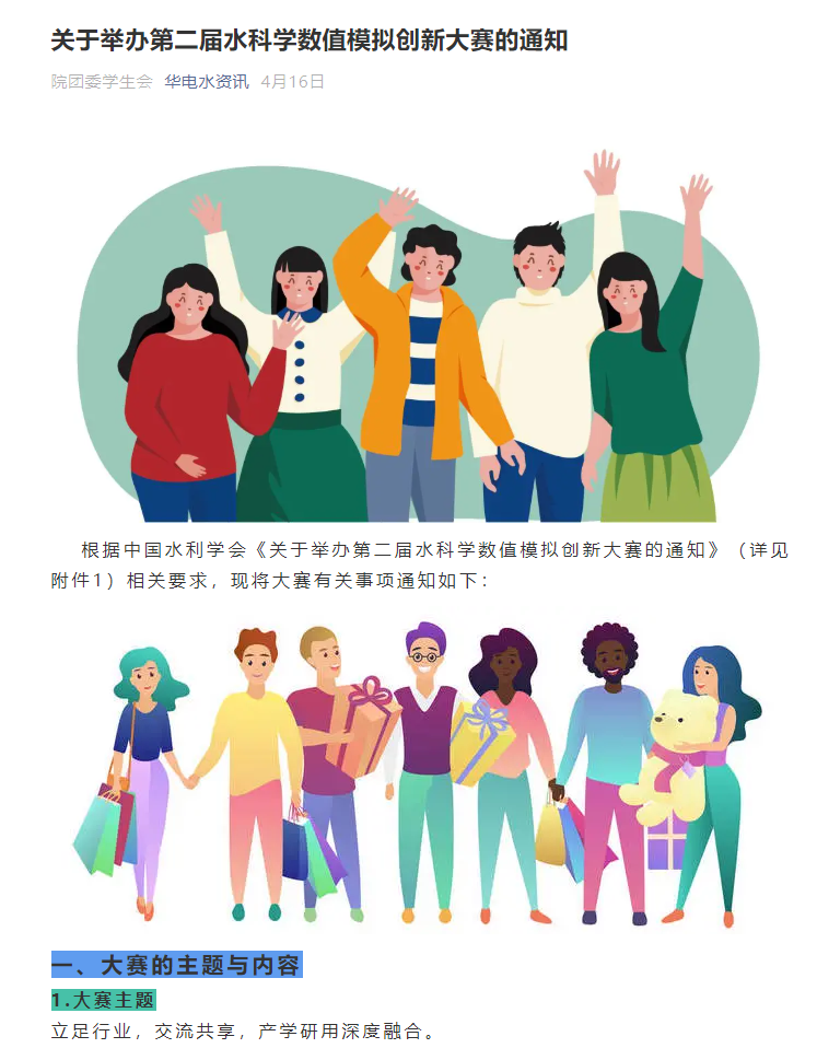 为促进水科学仿真模拟核心技术和实现产学研深度融合,中国水利协会举办了第二届水科学数值模拟创新大赛。经过学院广泛宣传动员、学生自愿组队报名,成人漫画 共推荐4支团队参加本次大赛。