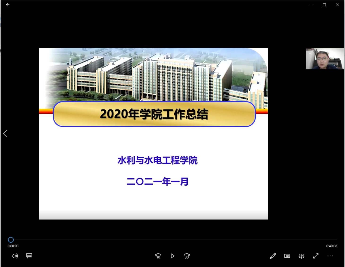 刘明军书记阐述了学院新的一年工作思路,2021年学院将进入新的发展阶段。凡事预则立,不预则废,我们要着眼长远、把握大势,开门问策、集思广益、研究新情况、作出新规划。在新的一年里,学院将开启教学、科研团队建设,制度建设,学院班子成员要精诚协作,服务师生,凝心聚力、集思广益、形成共识,要确保大家的知情权、参与权,确保改革有增量,确保广大师生员工在学院安心、舒心、开心工作,努力开创水利与水电学院各项事业的新局面。