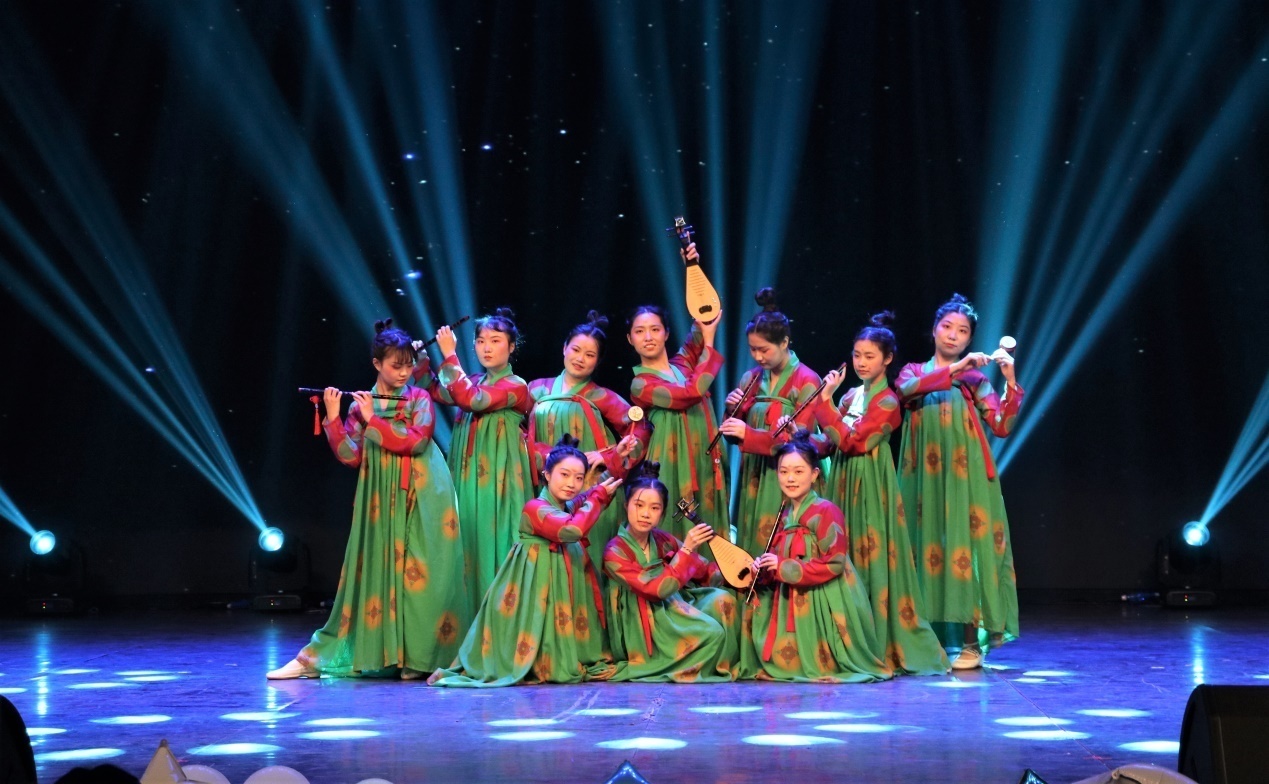 一群穿着唐朝服饰嬉戏的少女,在一颦一笑中生动地展现了唐朝独有的美学风范,民舞《唐宫夜宴》充分展现了中华民族的文化自信。