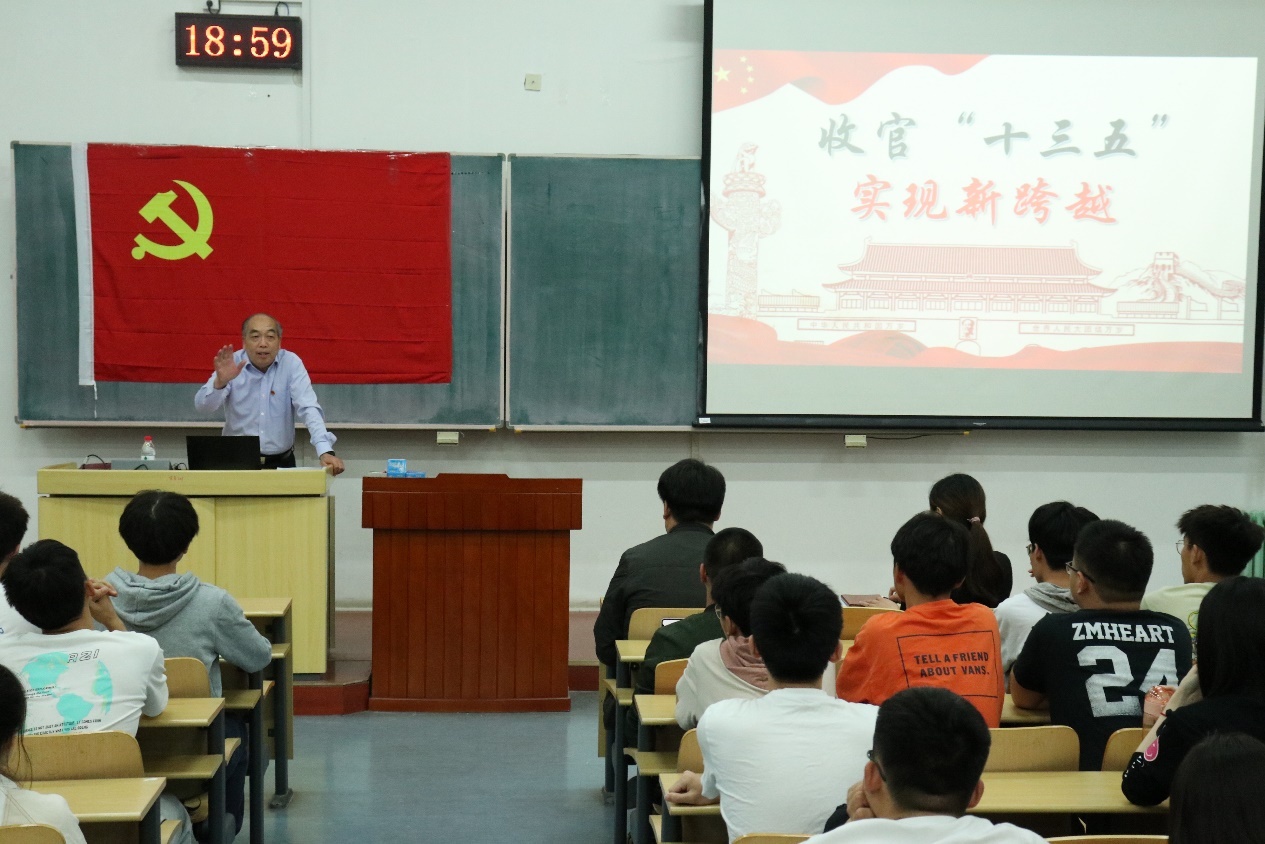 5月31日晚上,校党委常委、副校长孙忠权为成人漫画 师生讲授题为“收官‘十三五’,实现新跨越”的专题党课,学院负责人、辅导员、学生党员、党员发展对象、入党积极分子和主要学生干部参加了学习。