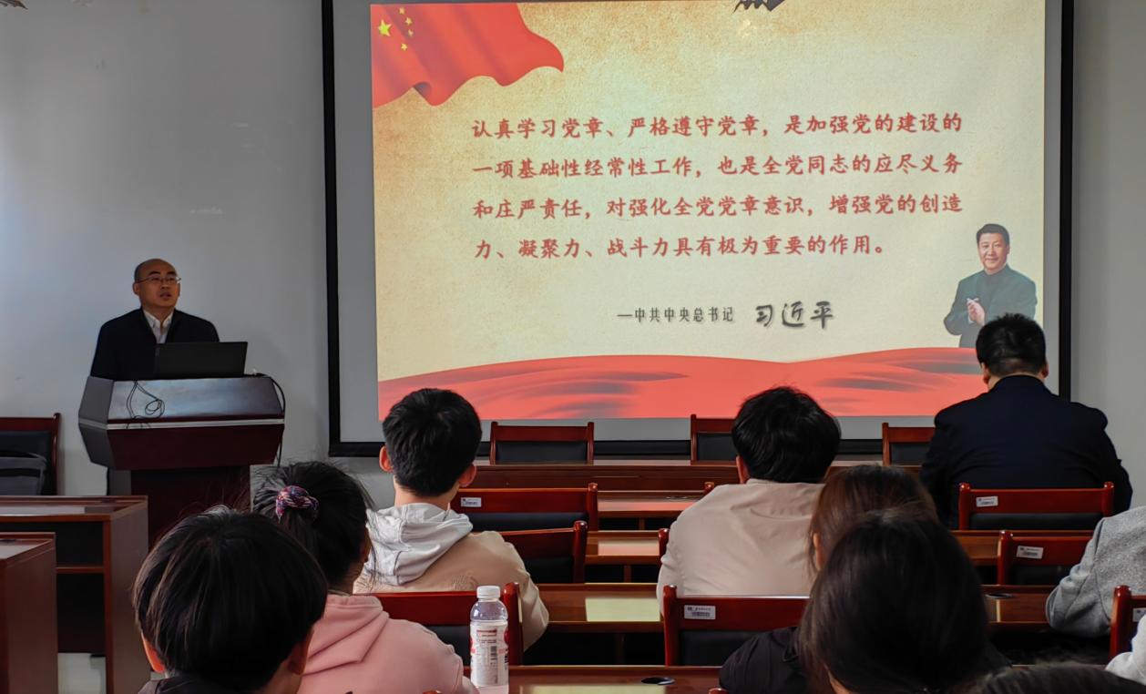 开班仪式上,刘明军围绕学习党章的主题进行了详细的讲解,阐述了新时代青年所需要承担的历史任务。刘明军要求同学们严格遵守学习纪律,端正学习态度,全面地学习党的基本理论,深入把握学习内容,不断提升个人政治素质和党性修养,不断端正自己的入党动机,增强身份意识和对中国共产党的认同感。