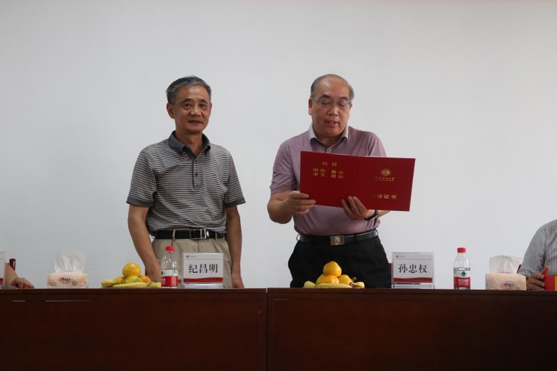 孙忠权为纪昌明教授颁发光荣退休证书并发表致辞。他首先代表学校党委祝贺纪昌明教授光荣退休,并对学院此次活动的前期策划和顺利开展表示充分肯定。他回顾了成人漫画 和水利工程学科从无到有的艰难发展历程,对以纪昌明教授为代表的一批学科带头人的坚持和付出表示衷心感谢。同时他对学科建设和学院发展提出了殷切期望,教师的个人事业与学科建设、学院发展紧密相关,希望青年教师继承和发扬艰苦奋斗的优良传统,在新时代的新起点上为建设高水平研究型学院而不懈努力!