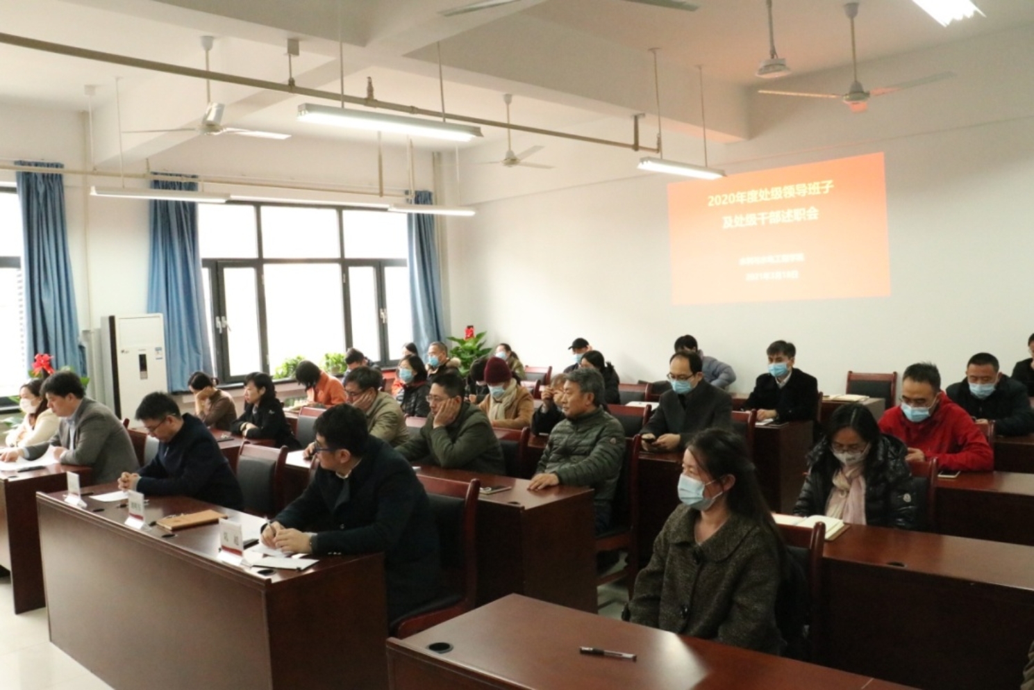 葛超对2020年度处级领导班子及干部述职评议考核工作,开展了测评要点讲解,并现场组织发放测评密码。全体参会人员按照学校工作要求,对学院领导班子及成员进行了网络测评。