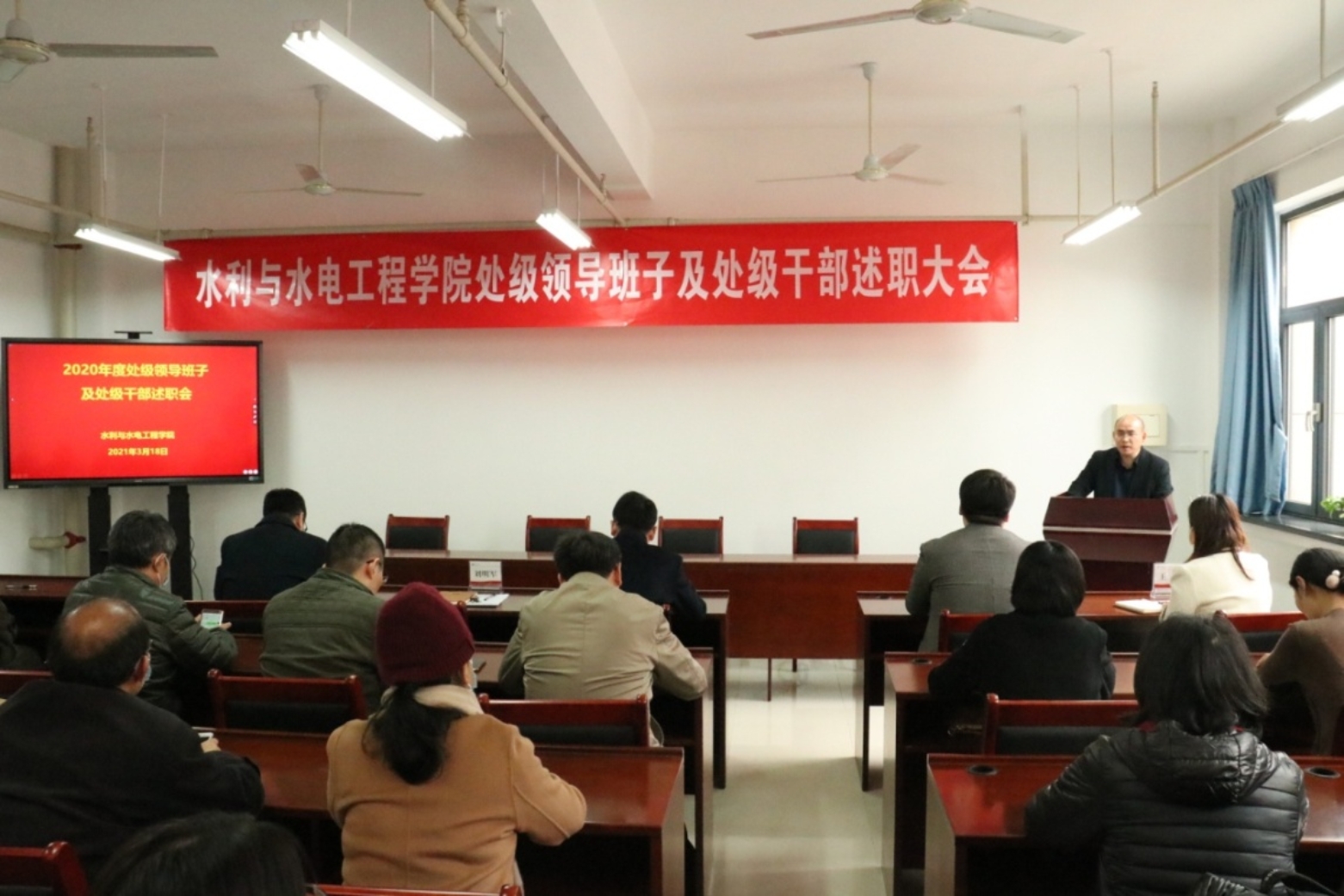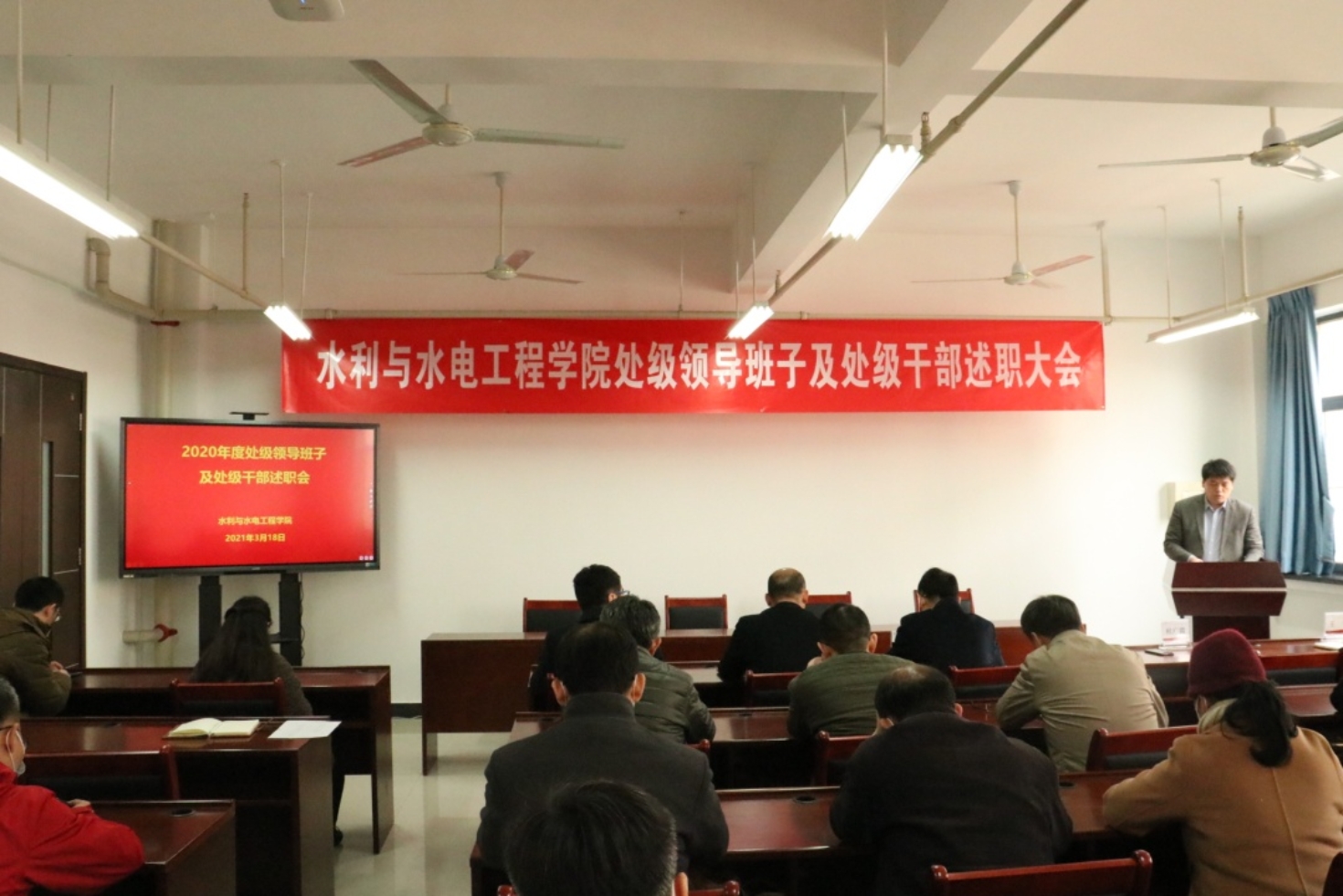 3月18日中午,成人漫画 召开领导班子述职会议暨新学期教职工大会。党委组织部副部长葛超、学院领导班子成员和全体教职工参加了大会。会议由学院党委书记刘明军主持。