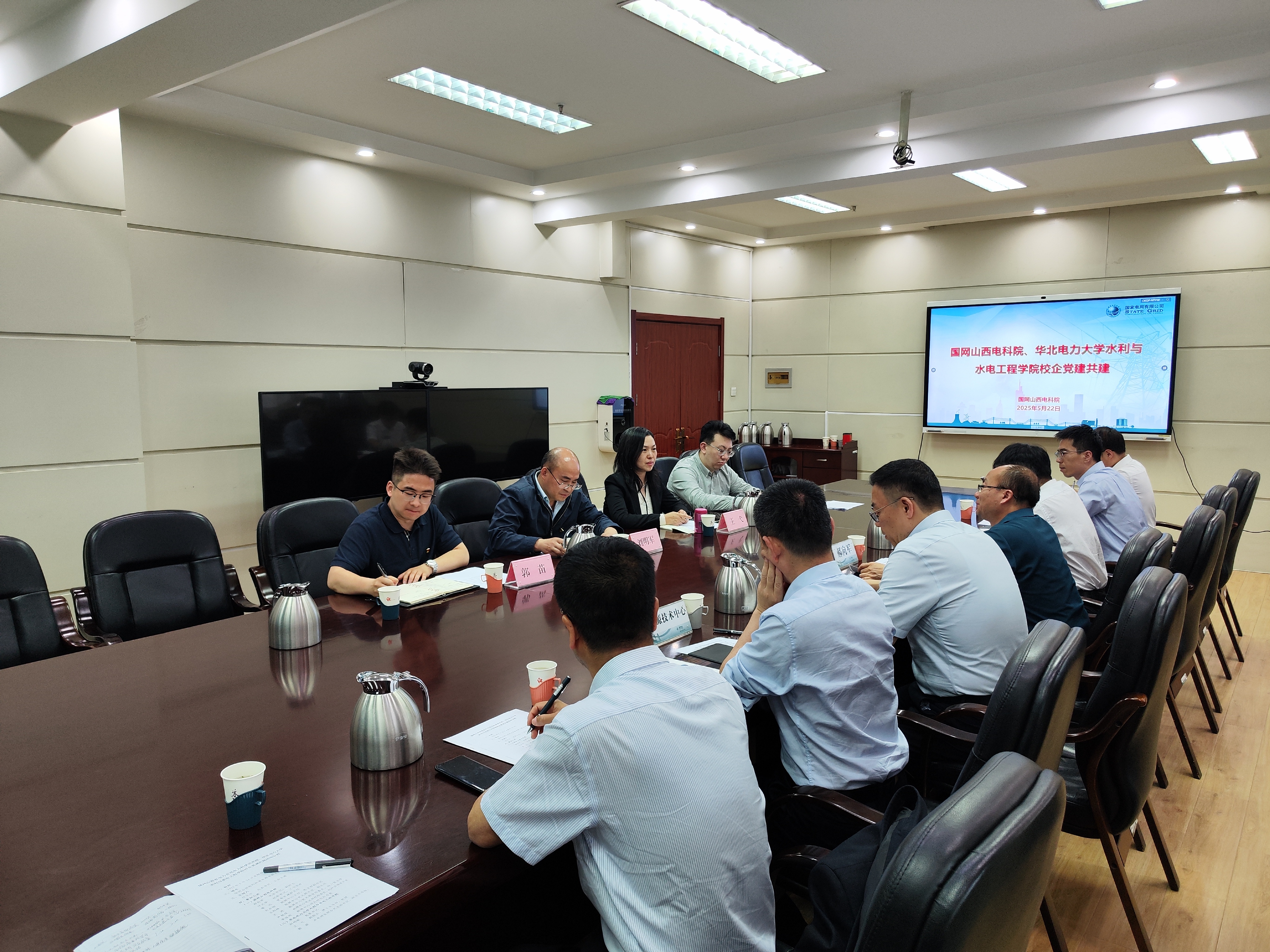 为了深入学习贯彻中央八项规定精神,铭记革命历史,传承红色基因。同时,严格落实习近平总书记在今年全国科技大会上深刻总结新时代科技事业发展的重要经验,“坚持党的全面领导”放在首位,指出科技强国是全党全国的首要任务,要发挥党的政治优势,健全党对科技工作的领导机制,保证科技事业发展始终沿正确方向前进。2025年5月22日,成人漫画 (以下简称“水电学院”)书记刘明军、副院长王弋、水电师生联合党支部(以下简称“水电支部”)书记郭苗及教师代表受邀与国网山西省电力公司电力科学研究院(以下简称“山西电科院”)开展校企党建共建活动。