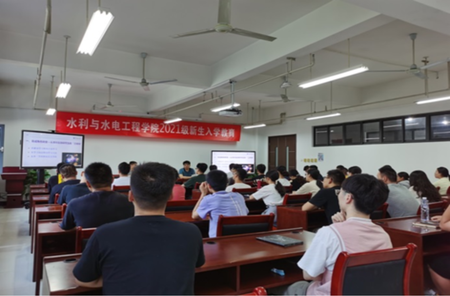 姚凯文结合自己长期指导研究生教育的经历,从“历史-现在-未来”三方面为大家展开讲解。他为大家介绍了华电水利学科建设与发展的历史;指出同学们现在应当以学为主,严格要求自己,在科研路上切忌耍小聪明和弄虚作假的行为;在学习和生活中要珍惜机会,把握机会,拓宽眼界格局。他希望同学们在研究生阶段应当提升自己,树立正确的职业目标并为之努力奋斗,服务社会。