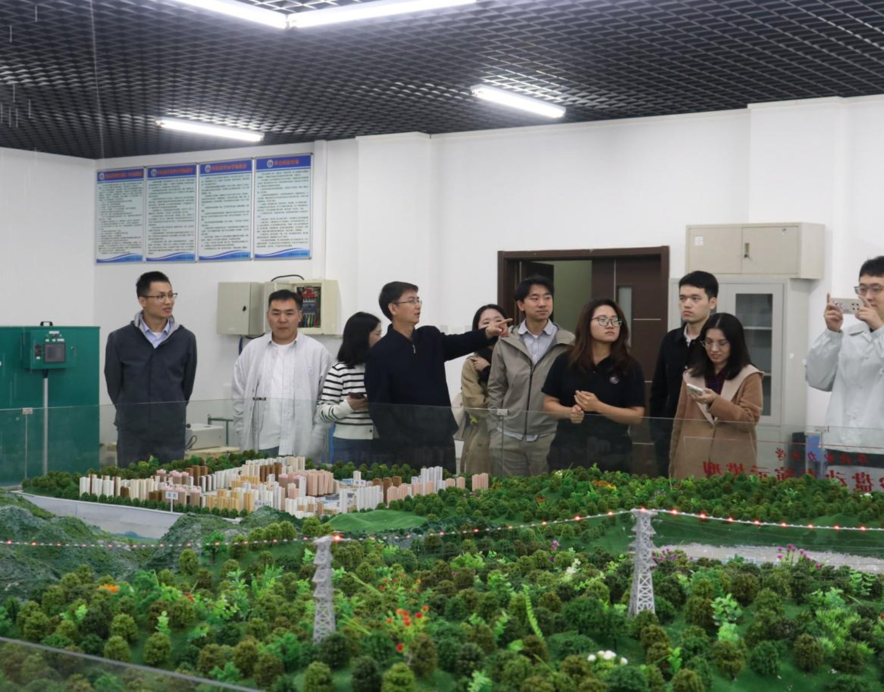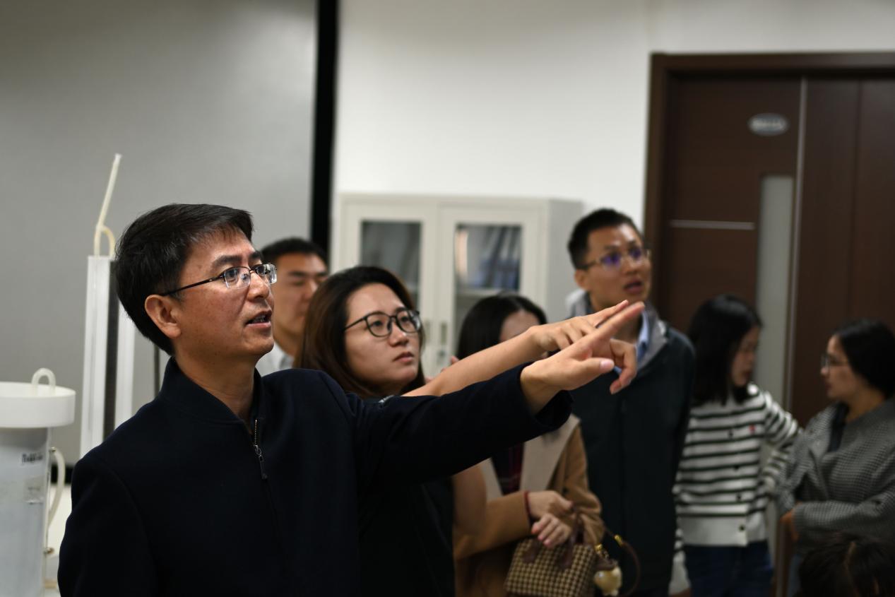 座谈会后,大家前往学院大厅合影留念,随后校友们参观了学院的办公室、心理辅导站、工程测量实验室、虚拟仿真实验室、水文沙盘实验室等。