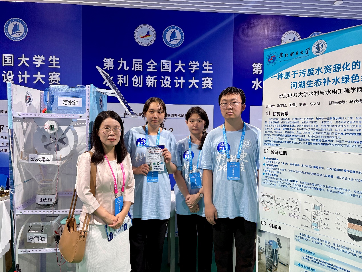 马秋梅、王飞宇指导的作品《一种基于污废水资源化的河湖生态补水绿色装置》荣获一等奖,团队成员包括马梦瑶、王雪、刘蓉、马文凯。该项目针对城市分散排污点污废水处理难和小型景观水体生态失衡问题,创新研发一体化绿色装置,集成“污废水净化-生态水位实时监测-生态智能补水”三大功能。